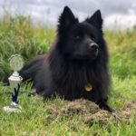 28. Juni 2015: Auf der Ausstellung in Lützelbach ist Aska in der Baby-Klasse gestartet und hat ihre ersten Pokale geholt. Für sie war aber sicher viel spannender, dass sie Mutter und Geschwister dort getroffen und sich mit Ylvas Tochter Adlin-Alva angefreundet hat. Wir haben uns riesig gefreut, Alva wieder zu sehen, und können nur staunen, wie ähnlich sie in allem Ylva ist! So hatten auch wir Menschen unseren Spaß, haben neue Spitz-Bekanntschaften geschlossen und waren abends genauso erledigt wie die Hunde…