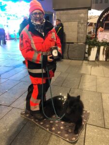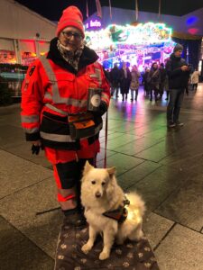 In 4 Würfen hat sie uns 24 Welpen geschenkt- Ihr – für einen Spitz nicht gerade typisch – freundliches Wesen hat mich auf die Idee gebracht, nach 10 Jahren Pause wieder in die Rettungshunde-Arbeit einzusteigen – und dadurch bin ich sehr schnell in der neuen Heimat „angekommen“ und habe viele Freunde gefunden