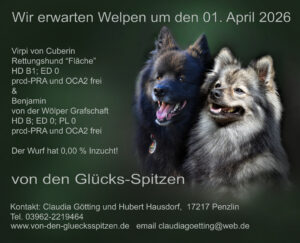 Die Welpen werden einen IK von 0,00% und einen AV von 9,57% haben und sind zu 75% Großspitze.
